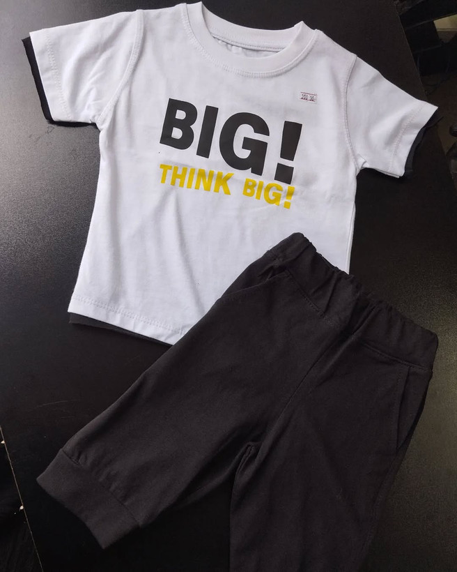 تیشرت و شلوارک ست مناسب برای دختران و پسران ۱ تا ۴ سال با رنگهای سفید و مشکی.